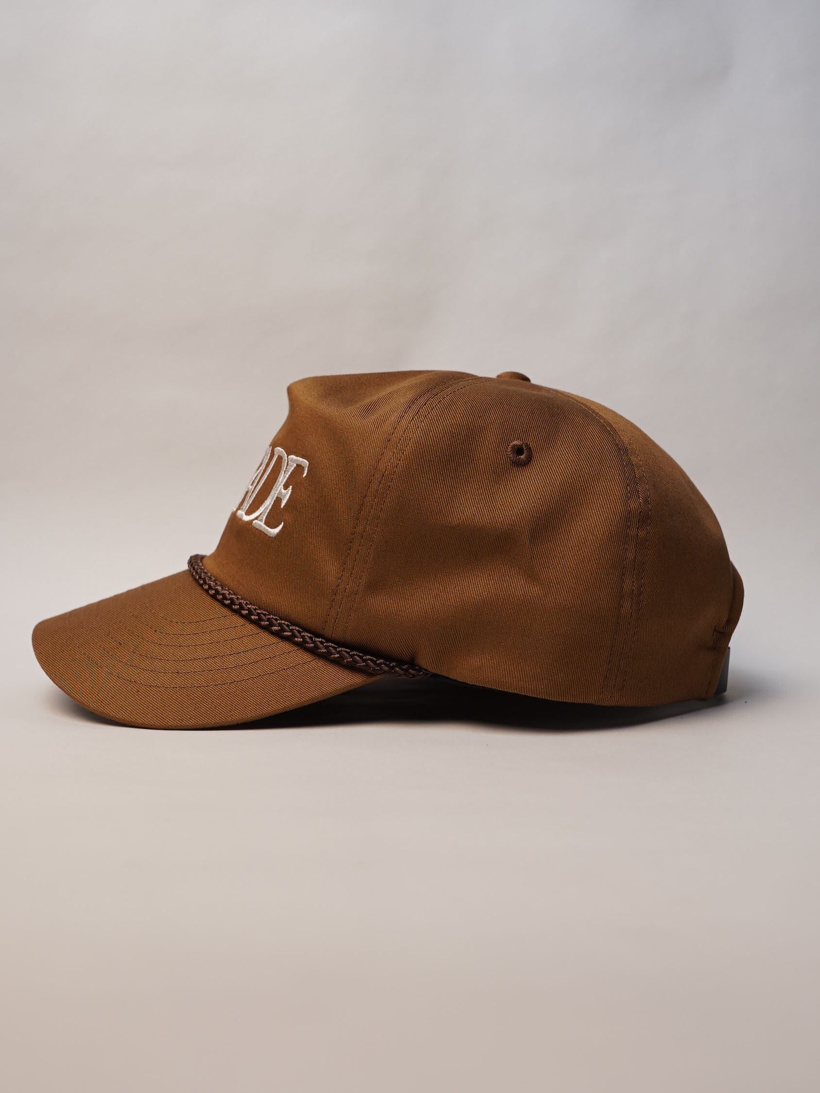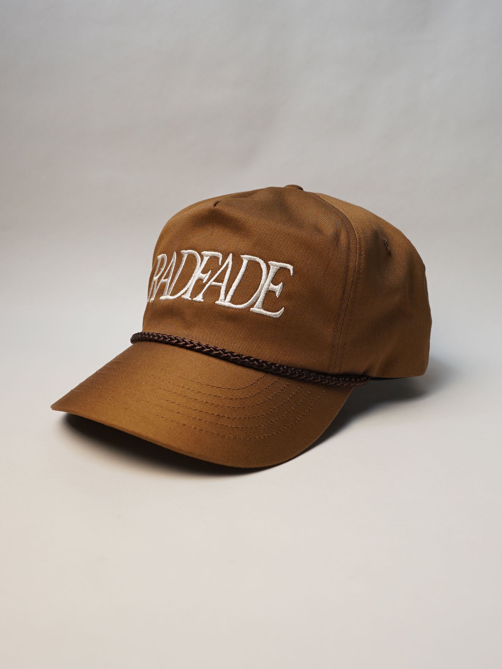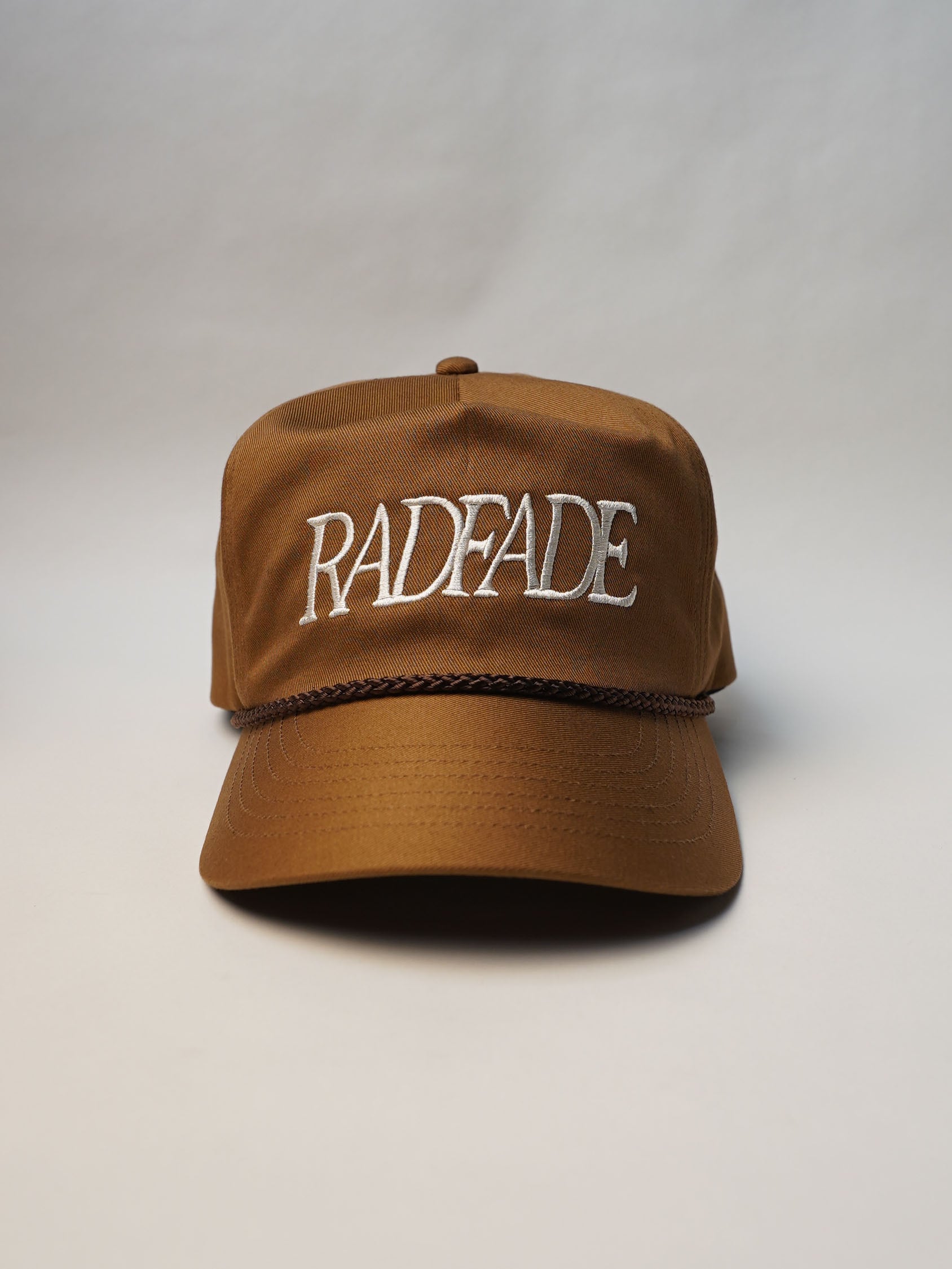 独自に型から制作したRADFADEオリジナルの5パネルキャップを使用しており、トラッカーキャップの力強さを持ちながらも、頭の形にすっと馴染むバランスの良さが特徴です。